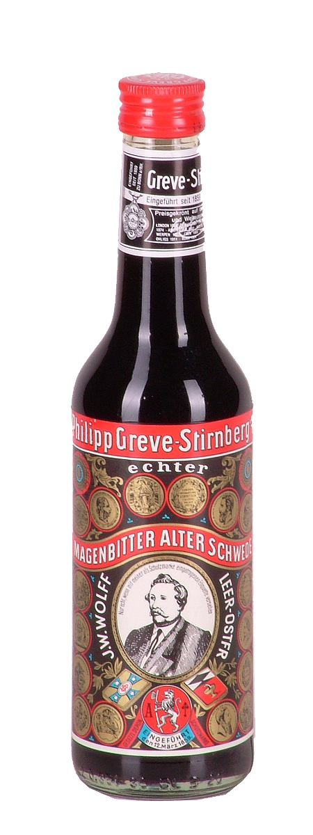 Die Rezeptur des original Philipp Greve-Stirnberg’s “Alter Schwede” besteht aus über 40 verschiedenen Kräutern sowie edelster Gewürze teils tropischer Herkunft, die noch heute nach dem besonders sanftem Originalverfahren mit Alkohol angesetzt werden. Der Alkohol zieht sämtliche Extraktstoffe und die für den Geschmack wichtigen Aromen aus den Kräutern.