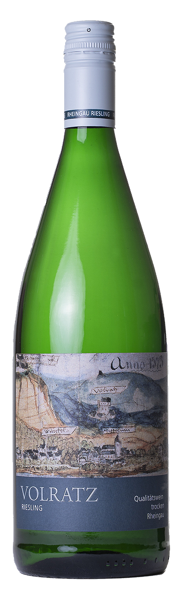 Der Volraz ist ein frischer, fruchtiger und trockener Rheingau-Riesling, der die Mineralität der Quarzit- und Lössböden widerspiegelt. Das Etikett zeigt die älteste bildliche Darstellung von Schloss Vollrads - damals noch "Volratz" genannt - aus einer Karte des Rheinverlaufes von 1573. Auf dem Gaumen saftig, fruchtig mit belebender Frische macht einfach Lust auf das zweite Glas.